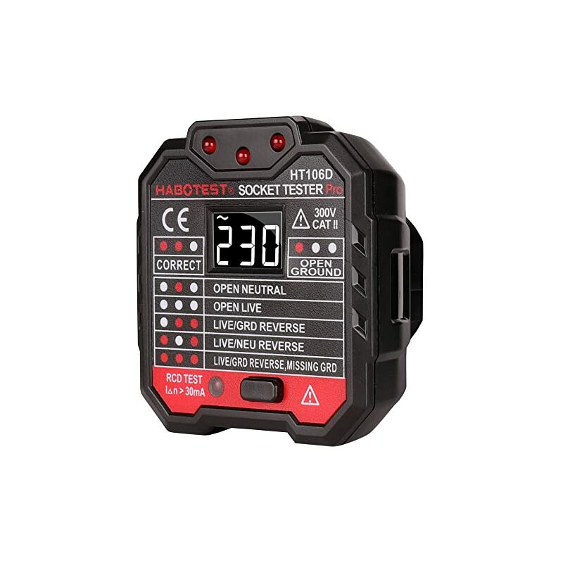 Tester per prese elettriche: Tester per spine avanzato per rilevare rapidamente se la connessione del cavo della spina è corretta o meno. È possibile testare il sistema di protezione per garantire la sicurezza elettrica della casa. Perfetto per proteggere la tua sicurezza dal rischio di scosse elettriche. Display LED luminoso: i modelli di luce sono ben etichettati sul retro del dispositivo. Gli indicatori LED rossi possono essere chiaramente illuminati anche alla luce diretta del sole. Il tester ha una luce incorporata in modo che possa essere utilizzato anche al buio, permettendoti di leggerlo rapidamente. Funzione DRC: Questo tester elettrico testa i dispositivi RCD simulando la condizione di messa a terra non collegata, che opera sulle prese RCD e conferma il funzionamento del dispositivo di protezione a terra non collegato. Testa le prese standard cablate in parallelo alle prese RCD. Assicurarsi di utilizzare questa funzione su prese normali. Potrebbe far scattare il cablaggio