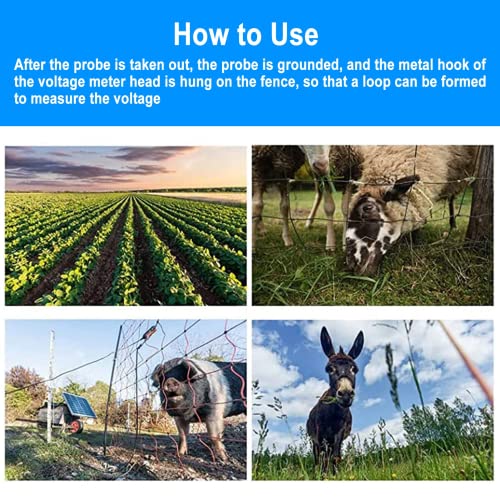 Ampio utilizzo: tester di recinzione applicato per misurare la tensione di qualsiasi filo metallico, multifilo, corda, multi-nastro, fili di recinzione, eccitatori, ecc. È ampiamente utilizzato nei giardini delle fattorie, nei recinti del bestiame e altri posti.