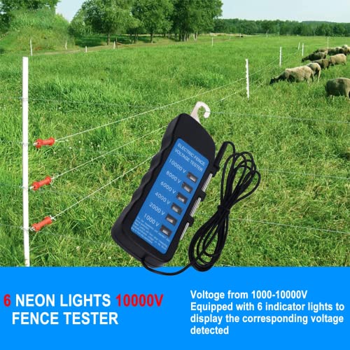 Ampio intervallo di tensione: tester per recinzioni Viene fornito con un'ampia gamma di test di tensione da 1000 a 10.000 V, adatto per controller di recinzione a bassa impedenza e standard.