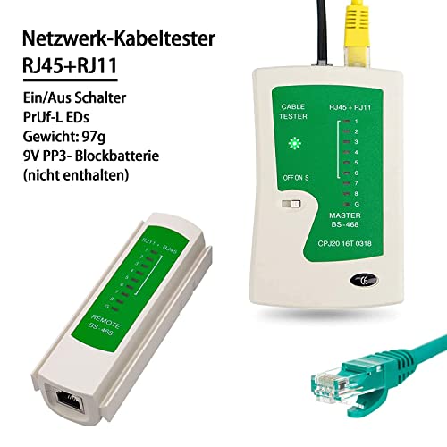 Uso generale: questo tester per cavi RJ45 può essere utilizzato non solo per testare cavi UTP e schermare RJ45, cat5e, cat6, cat6a, ma anche linee telefoniche RJ11 RJ12. La confezione contiene 1 tester per cavi di rete (batteria non inclusa, richiede 1 batteria da 9 V 6F22)
