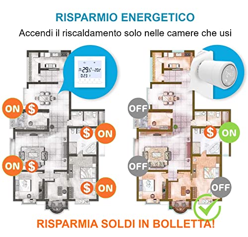 CONFORT STANZA PER STANZA: Passa al controllo multi-stanza per massimizzare il tuo comfort e il risparmio di energia. Le Testine Termostatiche Intelligenti permettono di programmare il riscaldamento stanza per stanza, in modo ancora più preciso. Vai al lavoro alle 9 e rientri alle 18? Il tuo riscaldamento si comporta di conseguenza.