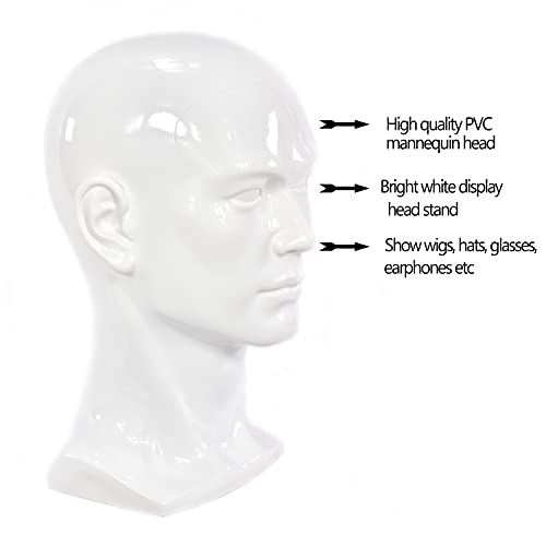 FFXS Testina di manichino in PVC con testina di manichino,testina, per display auricolari, console di gioco, cappelli, parrucche(bianco brillante)