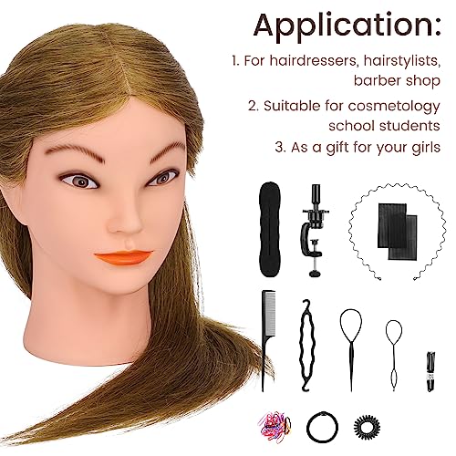 Testina Parrucchiere Capelli, TopDirect 18"/46cm 100% Veri Capelli Testa per Parrucchieri Testa per Acconciature Manichino Cosmetologia Formazione con Morsetto + DIY Accessori per Capelli