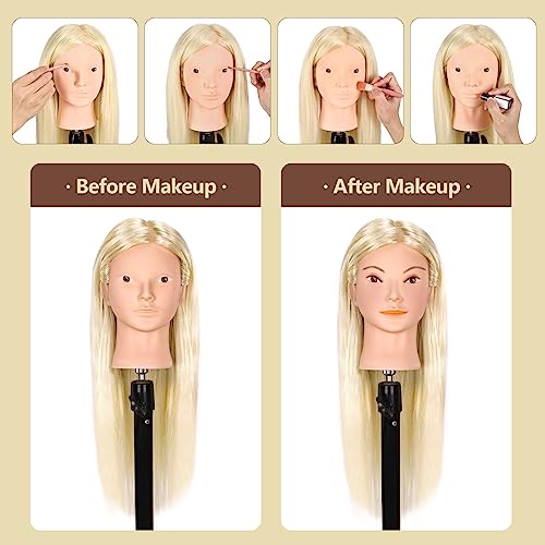 Testina Parrucchiere Capelli, TopDirect 66cm/26" 70% Veri Capelli Testa per Parrucchieri Testa per Acconciature Manichino Cosmetologia Formazione con Morsetto + 8pcs Extension Capelli Clip