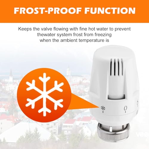 2 teste termostatiche: impostate la giusta temperatura in ogni stanza applicando la testa termostatica su tutti i vostri oggetti principali. Dimensioni bobina applicabile: 15 mm, attacchi filettati: M 30 x 1,5. Si prega di verificare se la testa del termostato è adatta per la valvola.