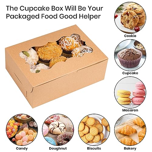 Testyu 30 scatole per cupcake, 20 x 15 x 7,6 cm, con finestra, scatole in carta kraft marrone, per compleanni, matrimoni, feste, biscotti e prodotti da forno
