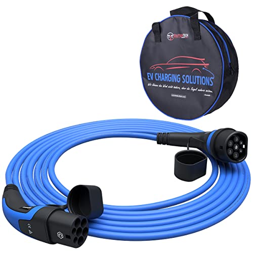 TEUTSCHTECH, Cavo di Ricarica per Veicoli elettrici Blu I 5M I TYP2 - TYP2 I 7,4kW I 1X32A I monofase I Ultima Versione, con monitoraggio della Temperatura di Carica