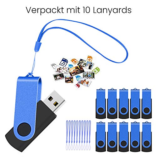 TEWENE Confezione da 10 chiavette USB da 8 GB con cordino, chiavetta USB 2.0, rotante, pieghevoli, (8 GB, 10 pezzi, blu)