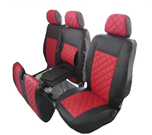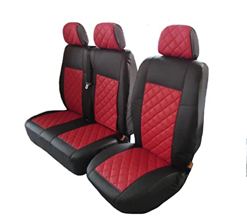 Texmar Designet per Mercedes Sprinter 2006 - 2018, VW Craft 2006 - 2018 LHD nero rosso eco pelle coprisedili 2+1 (1 singolo 1 doppio)