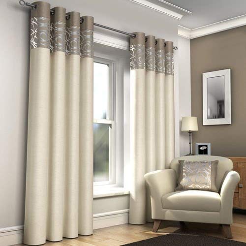Tony's Textiles - Coppia di tende con asole, già confezionate, completamente foderate, colori disponibili: rosso, nero, argento, panna, blu, Tessuto, Natural and Cream, 90" x 90" (229 x 229 cm)