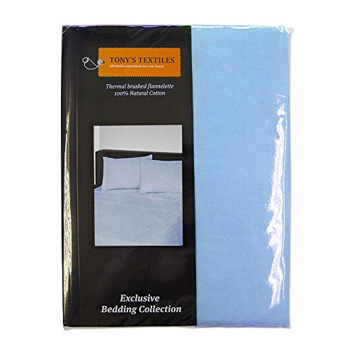 Tony's Textiles Lenzuolo Termico - 100% Flanella di Cotone Pettinato - Azzurro - Una Piazza e Mezza UK
