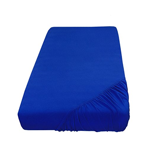 SHC Textilien Lenzuolo ad Angoli Elasticizzati in Jersey, in Diversi Colori e Misure. 100% Cotone, di Colore Blu Reale, 90-100 x 200 cm