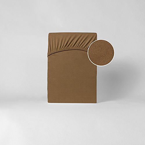 SHC Textilien, lenzuolo in microfibra con angoli, 100% poliestere, sand / cappuccino, 140-160 x 200 cm