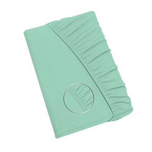 SHC Textilien Lenzuolo con ngoli per Materasso Topper boxspring in Jersey - 4 grabdezze e 25 Colori - 100% Cotone - ca. 130g/m² 200x220 cm Verde Mint