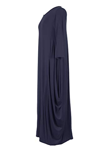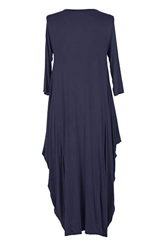 TEXTURE Ladies Women Italian Lagenlook Quirky 3/4 Sleeve Plain Viscose Jersey Tulip Long Midi Dress One Size UK 12-16 (One Size, Navy)