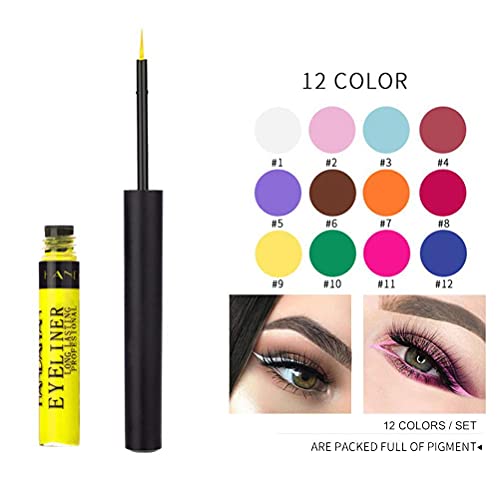 Teyiwei Eyeliner Liquido, Eyeliner Waterproof, Eyeliner Liquido Opaco, Eyeliner Colorati, Impermeabile a Lunga Durata, per Trucco per Cosplay(12 Colori)
