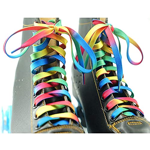 Un look nuovo di zecca: i lacci arcobaleno larghi e piatti sono ideali per pattini, pattini da hockey e scarpe normali. Un paio di lacci diversi possono rinfrescare le tue scarpe e renderle uniche.
