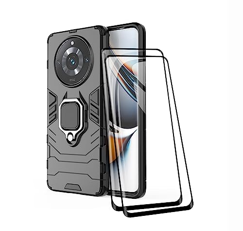 TEYYOS Cover + [2 Pezzi] Vetro Temperato per Realme 11 PRO+/Realme 11 PRO, TPU/PC Dual Layer Armor Antiurto Protezione Custodia [360° Supporto] con Durezza 9H Pellicola Protettiva, Nero