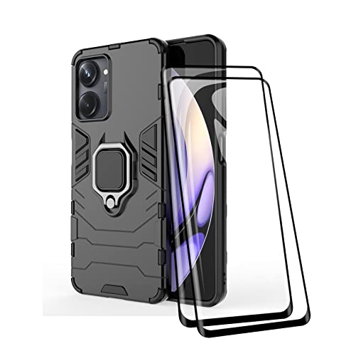 TEYYOS Cover + [2 Pezzi] Vetro Temperato per Realme 10 4G, TPU/PC Dual Layer Armor Antiurto Protezione Custodia [360° Supporto] con Durezza 9H Pellicola Protettiva, Nero