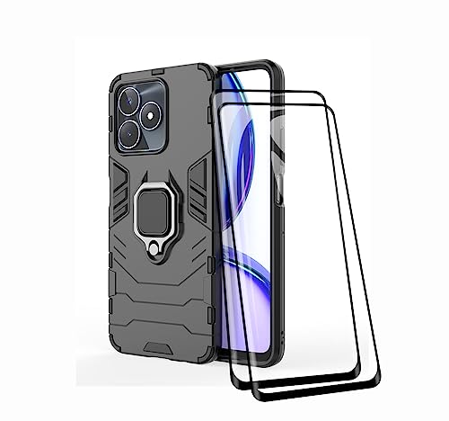 TEYYOS Cover + [2 Pezzi] Vetro Temperato per Realme C53, TPU/PC Dual Layer Armor Antiurto Protezione Custodia [360° Supporto] con Durezza 9H Pellicola Protettiva, Nero