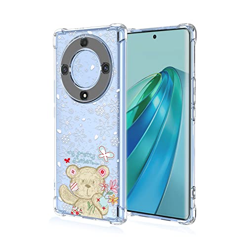 TEYYOS Custodia Adatto per Honor Magic5 Lite 5G, Motivo Fiore Trasparente TPU Silicone Protettiva Cover, [Rinforzare la con Quattro Angoli] Slim Custodia in TPU Antiurto Case Caso. Piccolo Orsetto
