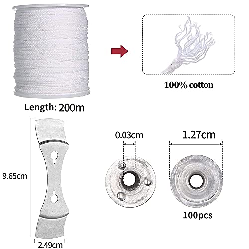 ◆Confezione:La confezione è dotata di 1 rotolo di stoppini per candele da 61 metri, 1 dispositivo di centraggio dello stoppino per candele e linguette di supporto in metallo da 100 pezzi.Il kit per la produzione di candele è un ottimo regalo per tutti gli amanti della produzione di candele, lo adoreranno.