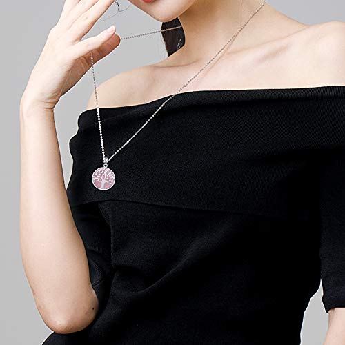 Thajaling Collana con Ciondolo Albero della Vita in Argento, Gemma Rosa, Ciondolo in Pietra energetica curativa, Cristallo, Regalo per Ragazze