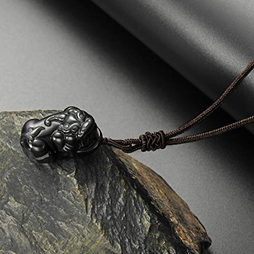 Materiale: Pixiu ossidiana nera, 3,3 * 1,3 cm (1,3 x 0,5 ") Catena: cordino in nylon nero regolabile da 24 pollici.