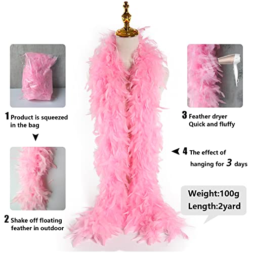 THARAHT Boa in piuma di tacchino lunga 100 grammi, per fai da te, fai da te, gioielli, cucito, decorazione per casa, festa di nozze, boa, rosa