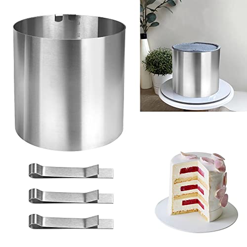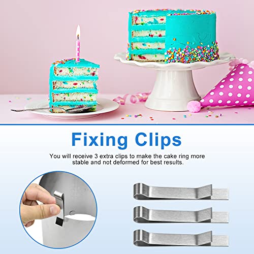 【Strumento ideale per cuocere dolci】La confezione contiene 1 anello per torta + 3 clip (8,5 * 1,2 cm), le clip possono fissare le dimensioni richieste e garantire stabilità, il che è comodo per realizzare tutti i tipi di deliziose torte rotonde. Con l'aiuto di anelli da torta, saranno in grado di creare perfette opere d'arte plastica. È lo strumento ideale per cuocere i dolci.