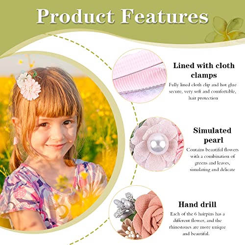 【6 disegni di fiori artificiali】Le nostre bellissime clip floreali contengono 6 diverse combinazioni di bellissimi fiori, impreziositi da foglie verdi artificiali, strass, perle, colori delicati ma divertenti, puliti ed eleganti adatti a tutti i tipi di abbigliamento, fodera morbida Maggiore comfort.