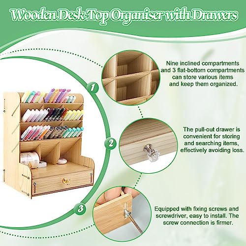 【Organizer da scrivania in legno multifunzionale】Questo portadocumenti da scrivania multifunzionale con cassetti è perfetto per l'uso in soggiorn