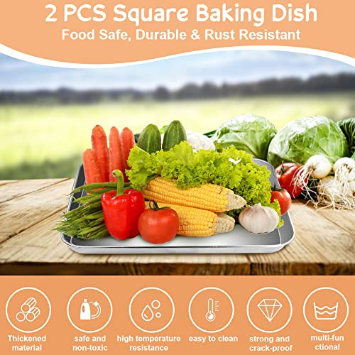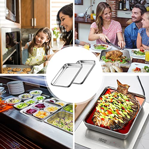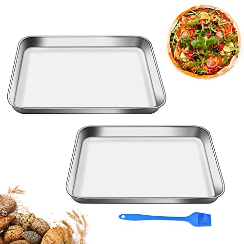 THATSRAD 2 Pezzi Teglie da Forno in Acciaio Inox Teglia da Forno Antiaderente Teglia Vassoio Rettangolare Professionale Teglia Rettangolare per Pane Biscotti Pizza Torte Verdure e Frutta, 26*20*2,5cm