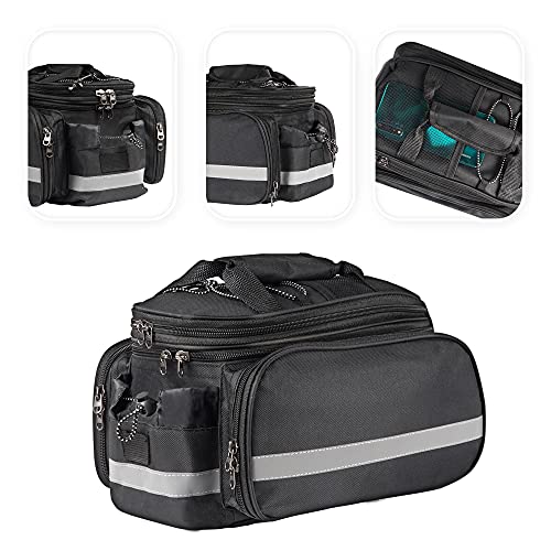 Borsa multifunzione per portapacchi posteriore per bicicletta: oltre ad essere utilizzata come borsa per portapacchi posteriore per bicicletta, può essere utilizzata anche come borsetta e tracolla. È molto adatto per attività all'aperto, come ciclismo, arrampicata, campeggio, viaggi, escursioni, pesca, questa è una buona scelta!