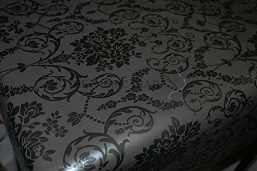 TheFabricTrade, tovaglia floreale damascata in tela cerata vinilica, nero/grigio, PVC, Black, 200 X 140CM