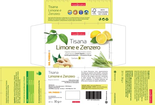 ✅ PANCIA PIATTA E CONTRO GONFIORE ADDOMINALE: Tisana limone e zenzero per pancia piatta e contro il gonfiore. Utile per favorire le funzioni digestive, la regolare motilità gastrointestinale e l''eliminazione dei gas. Lasciare in infusione un filtro in una tazza di acqua bollente, (ca. 150 ml) per 5-7 minuti con coperchio, per evitare la perdita dei principi volatili e assumere la tisana due volte al giorno, preferibilmente lontano dei pasti. È preferibile non usare acqua clorata e prima di togliere le bustine, premerle leggermente con il cucchiaino