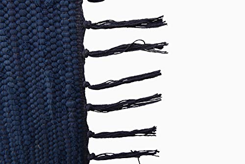 THEKO | Tappeto Dhurry in 100% cotone a tessitura piatta Tappeto Happy Cotton | Tessuto a mano | Colore: blu | 60x120 cm