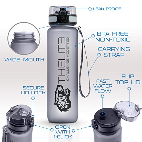 THELITE Best Sports Water Bottle US TRITAN Top Premium Quality 1000ml Green Non Toxic Eco Friendly BPA Free - Fast Water Flow One-Click Open Leak Proof Fitness Crossfit Running Gym Yoga Outdoors Camping