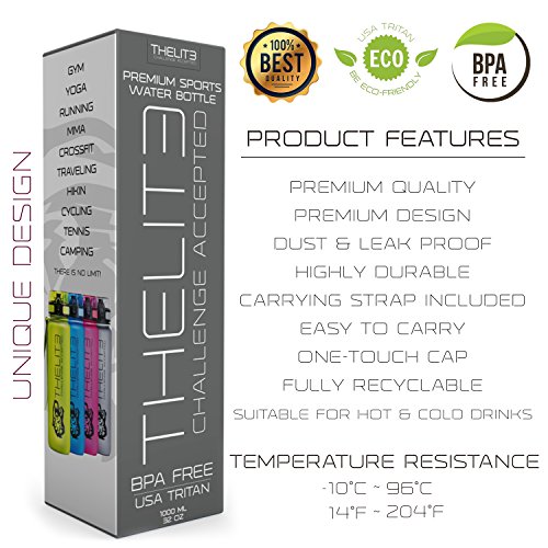 ✔ MULTI-FUNCTIONALITY and PRACTICALITY - Dust & Leak Proof with Special Lock System! Carrying Strap Included so it's really Easy to Carry. Special designed ONE-TOUCH Cap which I personally love the most, if you really need to access to liquid fast you just press the button! Right press the button and get instant access. We improved drinking experience by Fast Water Flow System & Wide Mouth Opening, which will provide you 100% satisfaction