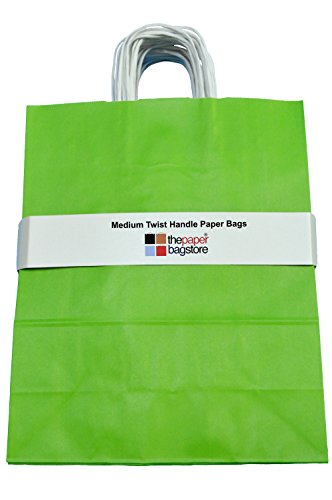Thepaperbagstore 10 Sacchetti di Carta Colorata, Riciclabili e Riutilizzabili, con Manici Intrecciati, Verde - Medi 250x110x310mm