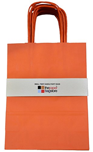 Thepaperbagstore 10 Sacchetti Piccoli di Carta per Feste, Confetteria e Regali con Manici Intrecciati - Arancione - 180x220x80mm