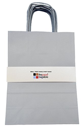 Thepaperbagstore 5 Sacchetti Piccoli di Carta per Feste, Confetteria e Regali con Manici Intrecciati - Argento / Grigio Chiaro - 180x220x80mm