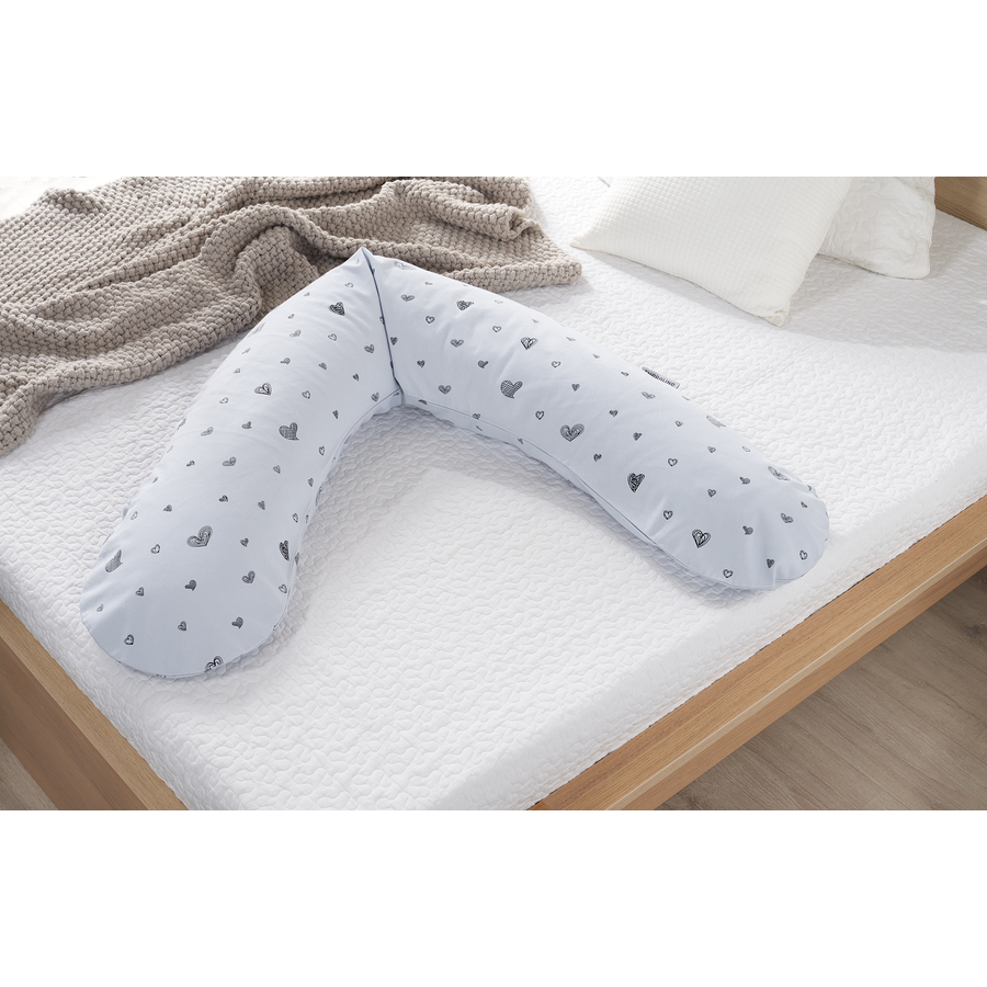 Dettagli del prodotto: Cuscino per l'allattamento con fodera Un supporto stabile per un sonno migliore durante la gravidanza Versatile per tutte le posizioni di allattamento Previene la tensione di spalle e collo Consigliato dalle ostetriche Colore: Grigio con cuori Materiale e dimensioni: Riempimento: microsfere Ticking: 100% cotone Rivestimento: 100% cotone 190 cm x 40 cm Istruzioni per la cura: Rivestimento esterno: lavare a 60°C, asciugare a bassa temperatura, stirare a bassa temperatura. Cuscino: Lavare a 60°C, asciugare a bassa temperatura.