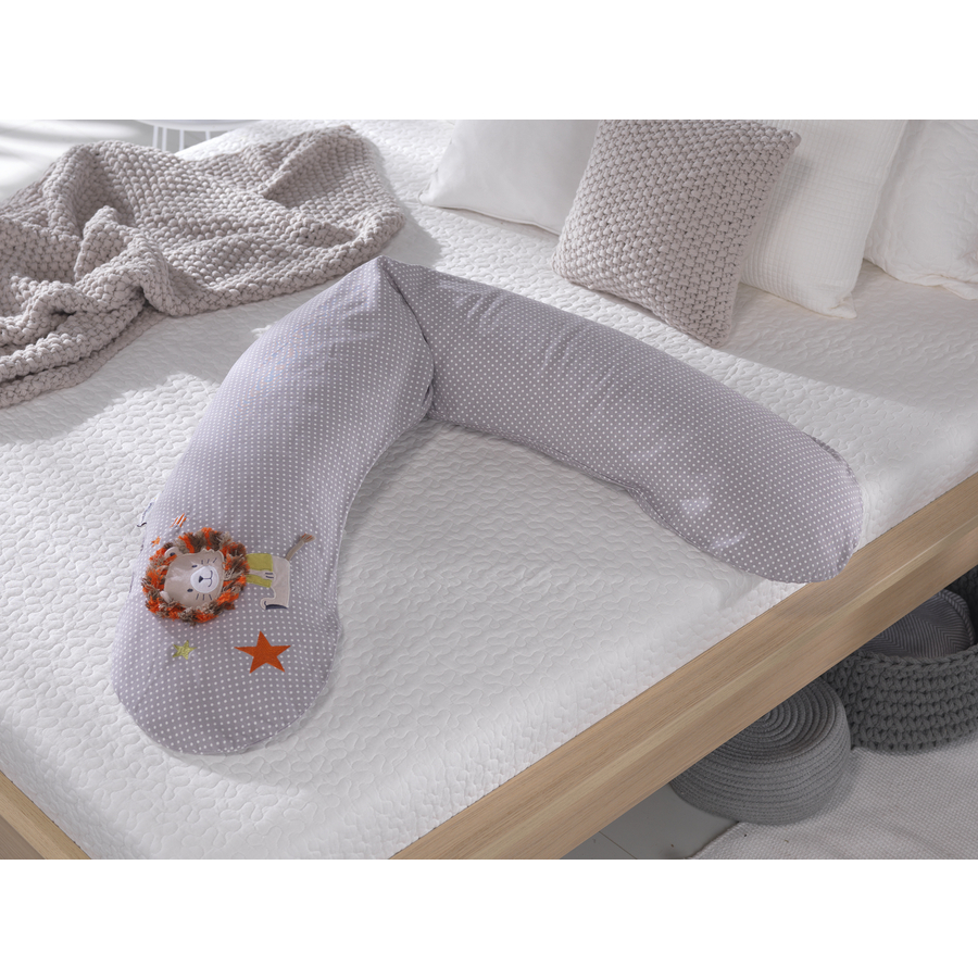 Il cuscino per l'allattamento Original è ideale per dormire meglio durante la gravidanza, per un periodo di allattamento più rilassato e in seguito come comodo cuscino per il bambino, per la lettura, per le coccole e per il sonno. Un cuscino speciale per un momento molto speciale. Nulla è più importante per l'attrattiva e la durata di tiger dei tessuti utilizzati e della loro lavorazione. Per aumentare la durata e il comfort degli ingressi e delle fodere, utilizziamo solo tessuti con un titolo F aden particolarmente elevato. Per le nostre coperture esterne utilizziamo inoltre solo tessuti pregiati, mercerizzati e con tinture reattive (particolarmente resistenti ai colori). Tutti i tessuti che utilizziamo sono pre-ristretti e soddisfano i più alti standard per l'uso quotidiano. Tutti i tessuti e i coloranti utilizzati sono privi di sostanze nocive. Dettagli del prodotto: Privo di sostanze nocive e odori riempimento con microsfere a basso rumore Con cerniera Dimensioni esterne: circa 190 x 40 cm Capacità di riempimento: 42 litri Materiale: 100% cotone Lavabile fino a 60° C (capovolgere sempre le coperte e lavarle con la cerniera chiusa (lasciare circa 10 cm aperti)! Asciugare in asciugatrice
