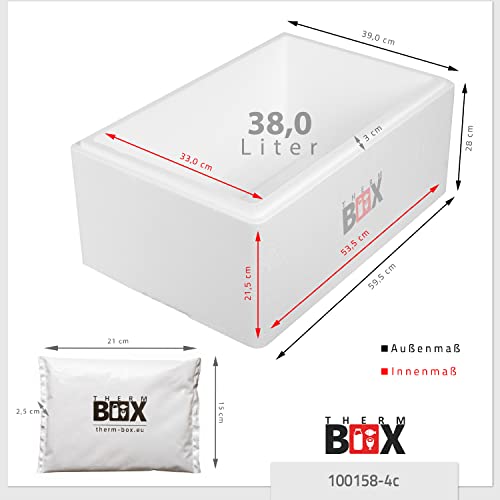 THERM BOX Scatola in polistirolo da 29 W con 4 pile per frigo, 29 l, interno: 53 x 33 x 16 cm, contenitore termico riutilizzabile