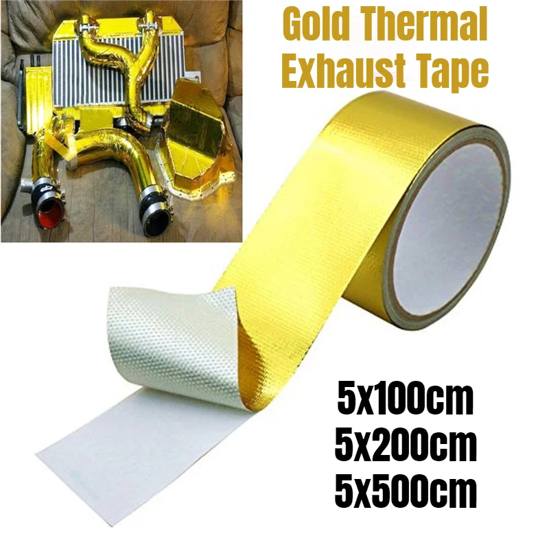 Gold Car Thermal Exhaust Tape Air Intake Heat Insulation Shield Wrap Reflective Heat Barrier Self Adhesive Engine Universal