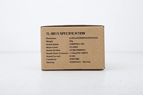 Specifiche del radiatore della CPU: 94,5 × 95 × 53 mm, ventola adatta: TL-9015, volume d'aria: 42,58 CFM (MAX), pressione dell'aria: 1,33 mmH2O (MAX), numero di giri: 2700 RPM ± 10%, rumore: 22,4 dB (A), perno ventola: 4 PIN PWM, materiale radiatore: alluminio. La pasta di trasferimento di calore attaccata può fornire un buon effetto di raffreddamento e migliorare il trasferimento di calore della CPU.