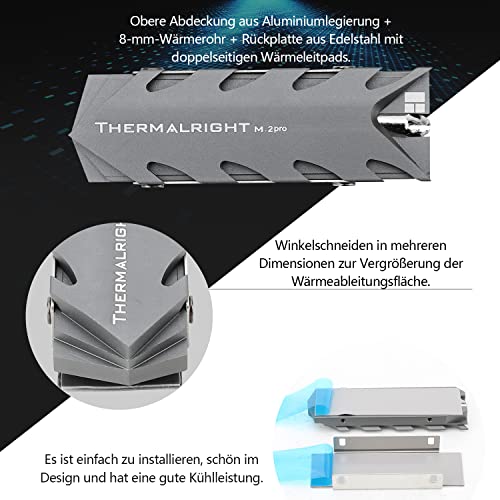 Thermalright M.2 Pro 2280 SSD Dissipatore di calore, tubo di calore da 8 mm, pad termico a doppio lato ad alte prestazioni