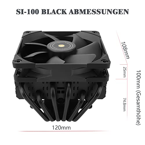 Thermalright SI-100 Black CPU Air Cooler, 6 × 6 mm Heat Pipes, TL-E12B PWM Quiet Fan CPU Cooler with S-FDB V2.0 Bearing, AGHP 3.0 technology, for AMD AM4 AM5/Intel 1150/1151/1200/1700/2011, PC Cooler