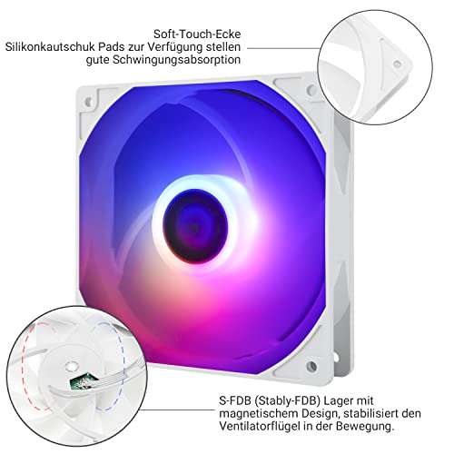 [Eccellente luce a LED] La pala della ventola argb ad alta luminosità che atomizza a LED può riflettere efficacemente la luce, rendendo l'effetto di illuminazione ARGB più morbido e si abbina perfettamente al dispositivo di raffreddamento e alla custodia. Fino a 17 modalità di effetti di luce con supporto ARGB, il colore può essere gestito e sincronizzato attraverso la porta sulla scheda madre.